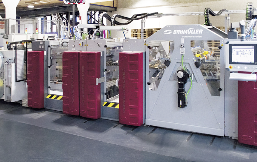 Unter dem Aspekt des Mantras und unter der Berücksichtigung aller betrieblichen und wirtschaftlichen Herausforderungen entschied sich Model für den von der FEFCO mit dem Innovationspreis in Bronze ausgezeichnete BAHMÜLLER POWERPACKER. Am Auslauf der Faltschachtelklebemaschine angeschlossen, übernimmt der POWERPACKER direkt aus dem Schuppenstrom die produzierten Schachteln.